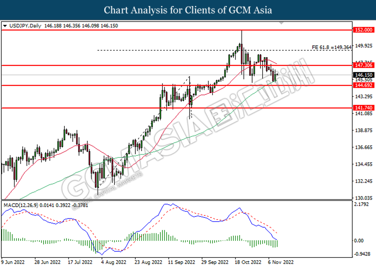 Tahap sokongan: 144.70, 141.75