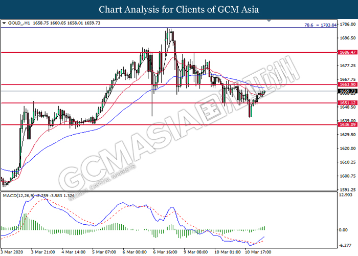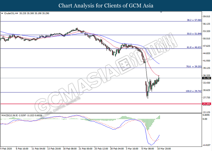 Di pasaran komoditi, harga minyak mentah telah meningkat sebanyak 1.35% kepada $ 35.23 setong sebagai penulisan di tengah-tengah harapan untuk rangsangan. Menurut kepada laporan terbaru, Menteri Tenaga Rusia Alexander Novak telah meminta pertemuan dengan syarikat minyak negaranya hari ini untuk membincangkan sebarang kemungkinan untuk kerjasama masa depan dengan OPEC. Selain itu, berita mengenai Trump telah bercakap dengan Putera Mahkota Arab Saudi Mohammed bin Salman dalam satu panggilan pada hari Isnin untuk membincangkan pasaran tenaga global juga memberi sokongan tambahan untuk pasaran minyak. Seterusnya, harga emas kekal mantap dan meningkat sebanyak 0.63% kepada $ 1659.83 se troy auns pada masa penulisan berikutan dengan dolar lemah dan kebimbangan koronavirus yang berterusan.