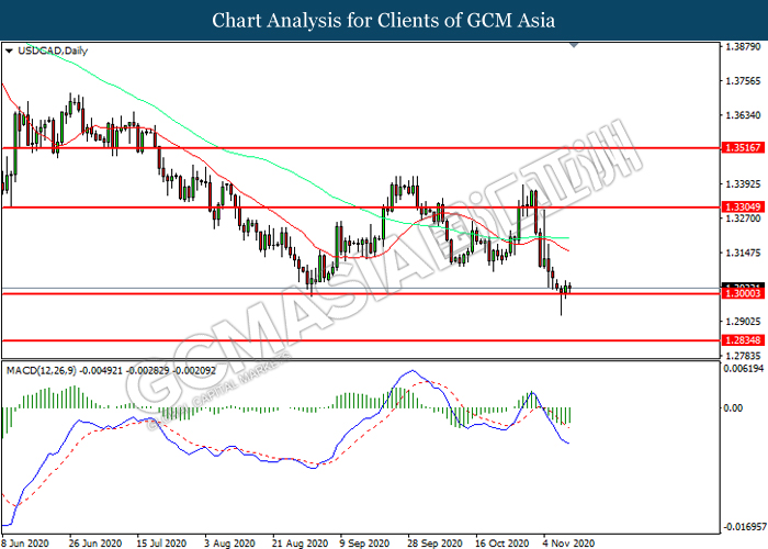USDCAD, Daily: USDCAD telah didagang dengan lebih rendah sementara kini menguji di tahap sokongan 1.3000. Namun, MACD yang memaparkan momentum bearish yang berkurangan mencadangkan pasangan ini untuk mengalami pembetulan teknikal bagi jangka pendek.