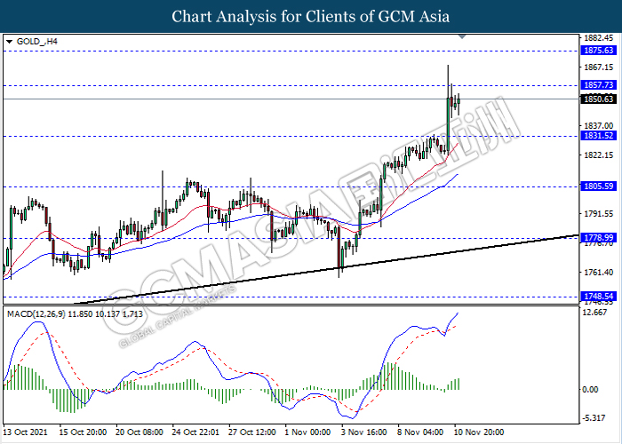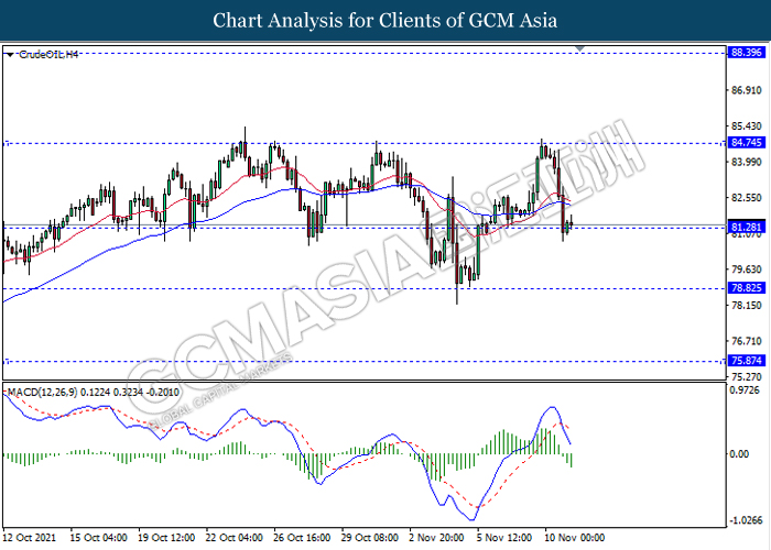 Dalam pasaran komoditi, harga minyak mentah turun sebanyak 0.06% kepada $81.45 setong semasa penulsan di tengah-tengah campur tangan kerajaan AS untuk mengekang kenaikan harga minyak. Menurut kepada Reuters, Rumah Putih A.S telah mengambil kira kemungkinan melepaskan minyak daripada Rizab Petroleum Strategik AS (SPR) di tengah-tengah kebimbangan mengenai kenaikan harga petrol baru-baru ini. Sebaliknya, harga emas melonjak 0.11% kepada $1850.37 se troy auns di tengah-tengah sentimen penghindaran risiko.