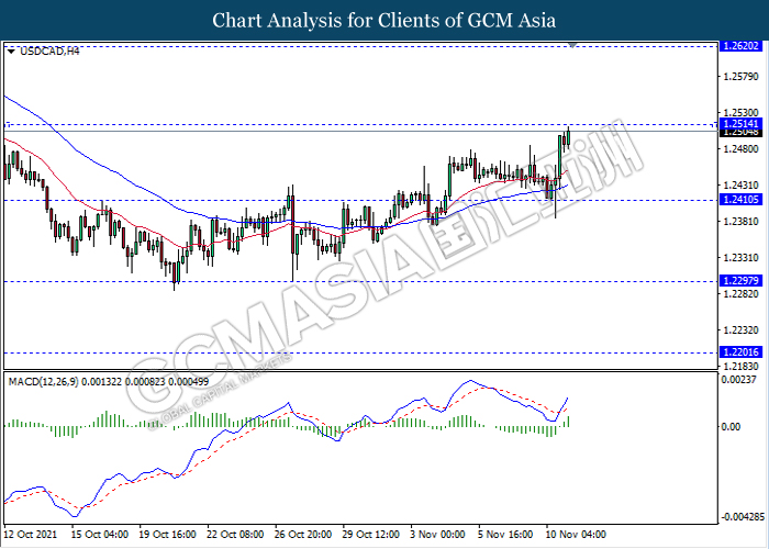 USDCAD, H4: USDCAD telah didagang dengan lebih tinggi sementara ia sedang menguji tahap rintangan 1.2515. MACD yang memaparkan isyarat momentum bullish dengan formasi silang emas mencadangkan pasangan ini untuk melanjutkan keuntungannya selepas ia memecah tahap rintangan tersebut.