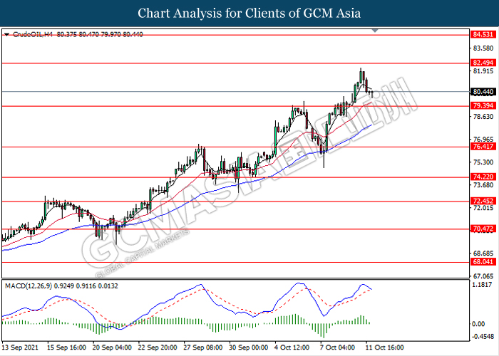 Di pasaran komoditi, harga minyak mentah turun sebanyak 0.04% kepada $80,44 setong semasa penulisan susulan dengan isyarat yang negatif di pasaran. Menurut kepada Reuters, Rumah Putih meminta OPEC untuk mengambil inisiatif yang lebih lanjut untuk mengawal kenaikan harga minyak mentah dunia. Kerajaan AS juga menyatakan akan memantau harga minyak dan petrol serta membuat perubahan di pasaran untuk memastikan pasaran minyak mentah yang stabil dan efisien. Sebaliknya, harga emas jatuh sebanyak 0.02% kepada $1753.09 se troy auns di tengah pengukuhan dolar AS.