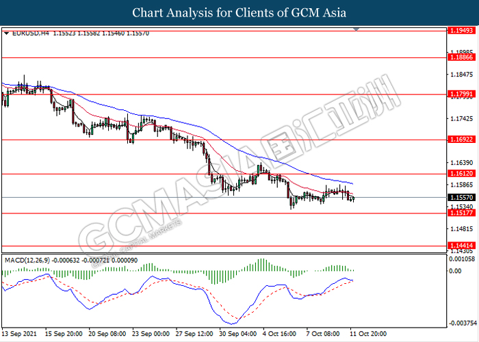 EURUSD, H4: EURUSD telah didagang dengan rata berhampiran dengan tahap sokongan 1.1515. Namun, MACD yang memaparkan isyarat momentum bullish yang berkurangan dengan permulaan formasi silang kematian mencadangkan pasangan ini untuk melanjutkan kerugiannya selepas ia memecah tahap sokongan tersebut.
