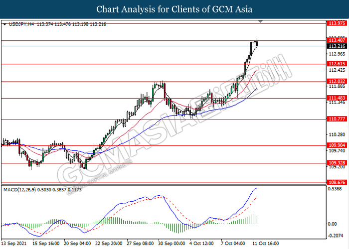 USDJPY, H4: USDJPY telah didagang dengan lebih tinggi sementara ia sedang menguji tahap rintangan 113.40. Namun, MACD yang memaparkan isyarat momentum bullish yang berkurangan mencadangkan pasangan ini untuk didagang dengan lebih rendah sebagai pembetulan teknikal ke arah tahap sokongan 112.60.