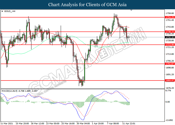 Bagi pasaran komoditi, harga minyak mentah telah meningkat sebanyak 0.32% ke $59.81 se tong semasa penulisan. Pasaran minyak mentah telah didagang dengan lebih tinggi susulan dengan program vaksinasi yang pantas di Amerika Syarikat. Harapan yang semakin meningkat untuk prospek positif terhadap aktiviti ekonomi A.S. akan terus memperbaiki permintaan minyak mentah pada masa yang akan datang. Sebaliknya, harga emas telah mencatat kerugiannya sebanyak 0.02% ke $1732.60 se troy auns semasa penulisan susulan dengan para pelabur masih mencerna pengeluaran data ekonomi positif dari rantau A.S. pada minggu yang lalu.