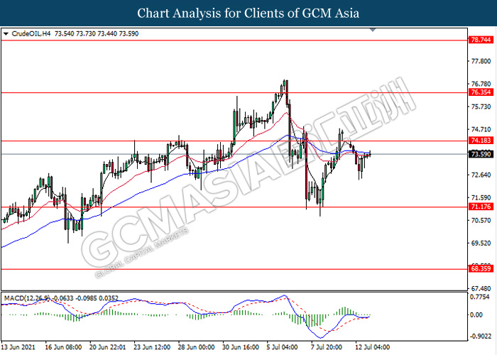 Di pasaran komoditi, harga minyak mentah meningkat sebanyak 0.23% kepada $ 74.44 setong pada masa penulisan berikutan dengan jangkaan terhadap penurunan stok minyak mentah A.S. Menurut kepada tinjauan awal Reuters pada hari Isnin, inventori minyak mentah A.S. dijangka akan turun untuk minggu kelapan berturut-turut, sementara stok petrol juga menurun. Sebaliknya, harga emas meningkat sebanyak 0.25% kepada $1810.75 se troy auns pada saat penulisan berikutan pengunduran dolar.