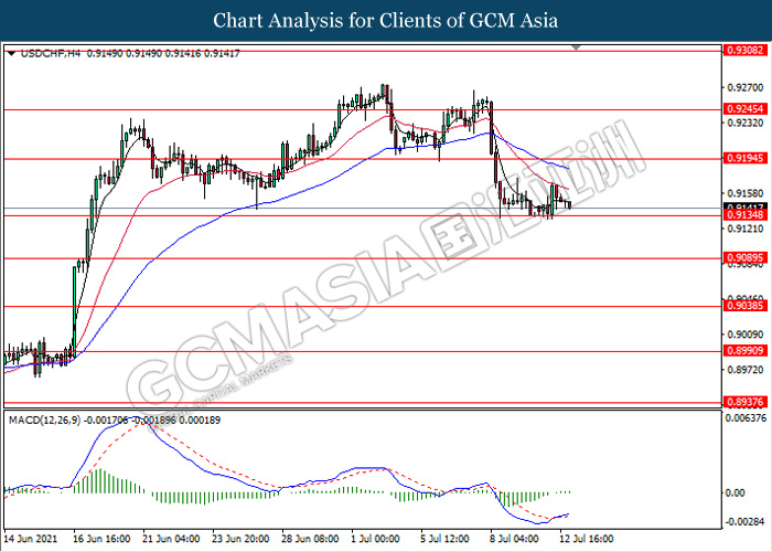 USDCHF, H4: USDCHF telah didagang dengan lebih rendah sementara ia sedang menguji tahap sokongan 0.9135. MACD yang memaparkan isyarat momentum bullish mencadangkan pasangan ini untuk melanjutkan keuntungannya ke arah tahap rintangan 0.9195.