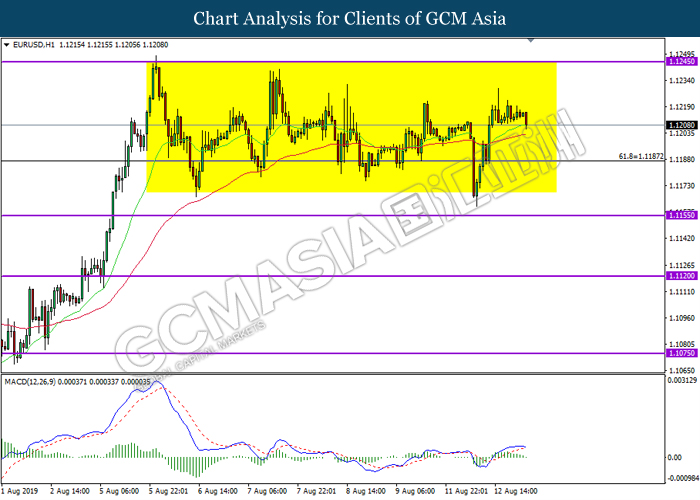 EURUSD, H1: EURUSD kekal didagang dalam saluran sisi sementara menguji berdekatan garisan MA-20 (hijau). MACD yang menunjukkan isyarat bias bearish mencadangkan pasangan ini untuk melanjutkan kerugiannya ke arah tahap sokongan 1.1185 selepas ia berjaya untuk menutupkan lilinnya di bawah garisan MA-20 tersebut.
