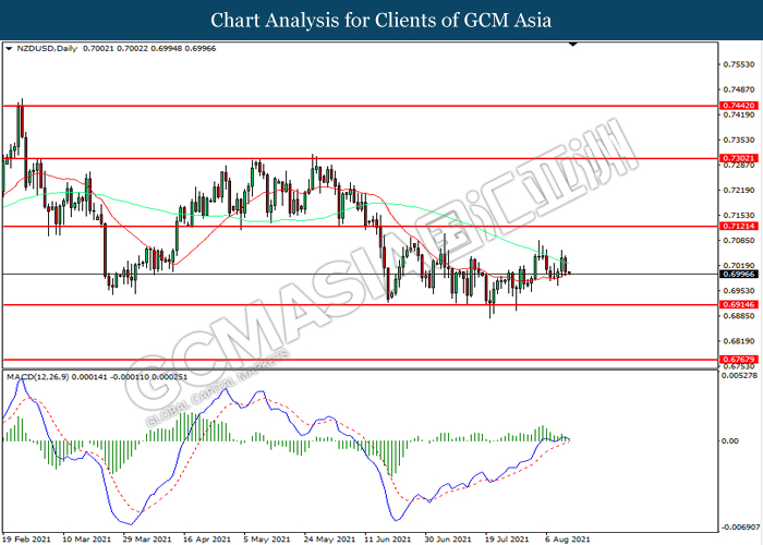 NZDUSD, Daily: NZDUSD telah didagang dengan lebih tinggi selepas ia melantun dari tahap sokongan 0.6915. Namun, MACD yang memaparkan momentum bullish yang berkurangan mencadangkan pasangan ini untuk mengalami pembetulan teknikal bagi jangka pendek.