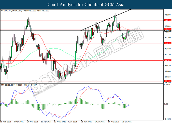 Indeks Dolar yang didagang terhadap sebakul enam pasangan mata wang utama telah mencatat keuntungannya susulan dengan peningkatan untuk hasil perbendaharaan A.S. selepas Amerika Syarikat melepaskan data inflatisi yang tinggi. Menurut kepada A..S Bureau of Labor Statistiks, Producer Price Indeks (PPI) A.S. untuk bulan yang lepas telah memberi bacaan sebanyak 0.7%, lebih tinggi daripada jangkaan pasaran sebanyak 0.6%. Data inflasi tinggi tersebut akan mencetuskan harapan bahawa Bank Pusat A.S mungkin mulai mengurangi pembelian assetnya dan juga mengetatkan dasar monetari untuk memerangi risiko inflasi yang tinggi. Selain itu, Dolar AS melanjutkan keuntungan dengan latar belakang kenyataan hawkish dari Fed pada Jumaat lalu. Menurut kepada Reuters, Presiden Cleveland Fed Loretta Mester juga mendakwa pada hari Jumaat bahawa beliau masih akan menyokong Bank Pusat A.S. untuk mengetatkan dasar monetari mereka tahun ini. Walaupun demikian, para pelabur akan terus meneliti kemas kini terkini mengenaidengan pengembangan Covid-19 serta data ekonomi penting untuk menjangkakan kemungkinan pergerakan dolar AS. Semasa penulisan, Indeks Dolar telah meningkat sebanyak 0.05% ke 92.65.