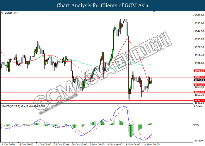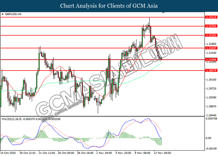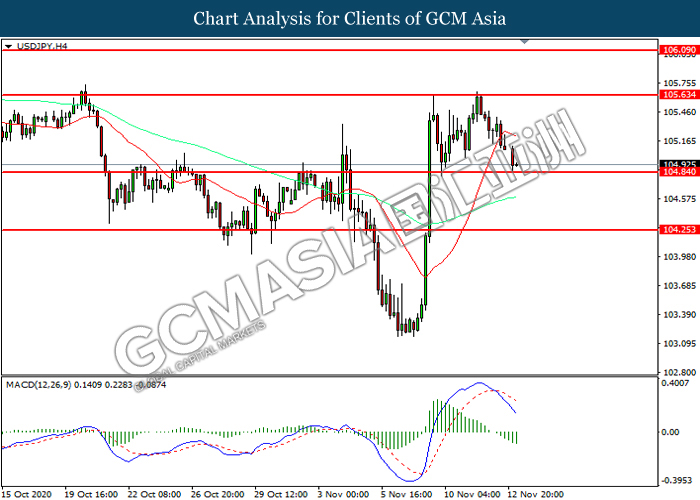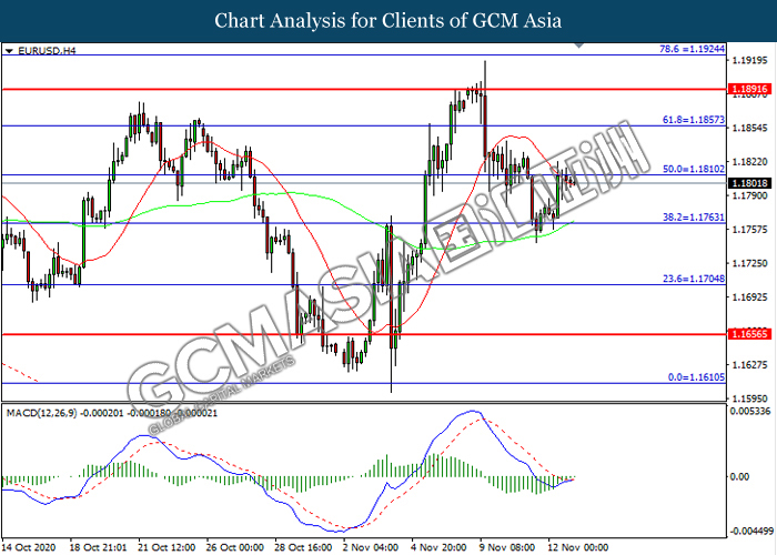 Semasa lewat sesi Asia, indeks dolar yang didagang terhadap sebakul enam pasangan mata wang utama kekal stabil dan meningkat berikutan dengan kes COVID-19 yang semakin teruk di Eropah dan AS mengurangkan daya tarikan mata wang yang berisiko dan mendorong permintaan dolar AS sebagai mata wang selamat. Walaupun dengan perkembangan positif baru-baru ini di mana Pfizer dan Biotech melaporkan keberkesanan setinggi 90% dalam vaksin percubaan mereka, pasaran kekal berwaspada terhadap masalah logistik dalam pengeluaran besar-besaran dan pengangkutan untuk vaksin ini akan memerlukan jangka waktu yang tertentu. Oleh itu, keyakinan terhadap vaksin untuk tersedia dalam masa terdekat telah pudar. Dari segi data, peningkatan dalam pasaran pekerjaan juga menimbang dalam dolar. Dari segi data, data Initial Jobless Claim telah bertambah baik kepada 709K, lebih baik daripada jangkaan pasaran sebanyak 735K. Namun, CPI AS yang memberi bacaan sebanyak 0.0% berbanding dengan jangkaan pasaran sebanyak 0.02% membuktikan bahawa pemulihan A.S. masih mempunyai jalan yang panjang. Pada masa penulisan, indeks dolar menokok sebanyak 0.02% kepada 92.96.