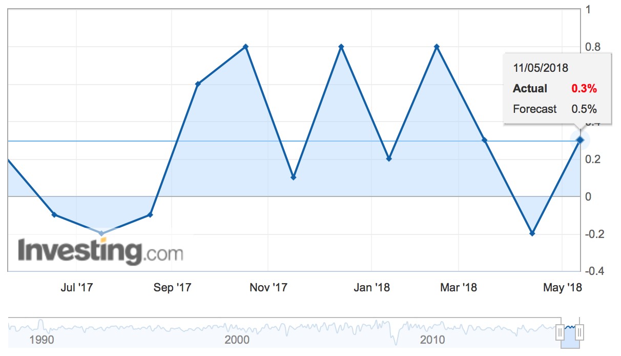 Kadar Import Price Indeks bagi bulan April memberikan bacaan sebanyak 0.3%, lebih rendah daripada ramalan konsensus iaitu 0.5%.