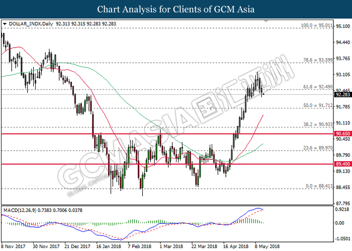 Tambahan pula, momentum bearish ke atas dolar telah dipertingkatkan lagi dengan data Import Price Index yang memberi bacaan hanya 0.3% untuk bulan April, tersasar daripada ramalan iaitu 0.5%. Kedua-dua data tersebut memberikan cadangkan bahawa tekanan inflasi di AS telah mula susut dan ia telah mengakibatkan pertaruhan bullish ke atas dolar untuk menurun buat sementara waktu ini.