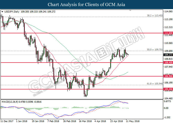 Tahap sokongan: 108.40, 106.90
