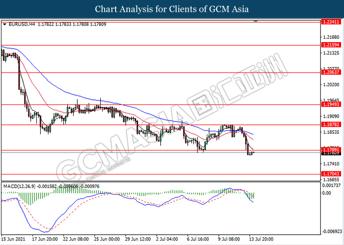 Paun sterling yang didagang terhadap dolar dan pasangan mata wang lain telah didagang dengan rendah susulan dengan data Retail Sales yang negatif dari U.K semalam. Menurut kepada British Retail Consortium (BRC), data Retail Sales Monitor pada bulan Jun telah mencatatkan penurunan yang mengecewakan dari bacaan sebelumnya sebanyak 18.5% kepada 6.7%. Ini menunjukkan bahawa ekonomi UK masih kekal lemah dan mencetuskan momentum bearish untuk paun sterling. Di samping itu, paun sterling juga melanjutkan kerugiannya di tengah-tengah wabak pandemik koronavirus yang masih belum dapat diselesaikan di rantau UK, bersama dengan pertikaian antara U.K dan EU mengenai isu Brexit. Sebaliknya, dolar AS melonjak susulan dengan pengeluaran data inflasi pengguna AS yang terkini. Laporan CPI yang terbaru telah mendorong spekulasi pasaran bahawa Fed akan mengetatkan dasar kewangannya dan mendorong para pelabur mengalihkan portfolio mereka dari paun sterling ke dolar AS. Pada masa penulisan, GBP/USD menyusut sebanyak 0.05% hingga 1,3787.
