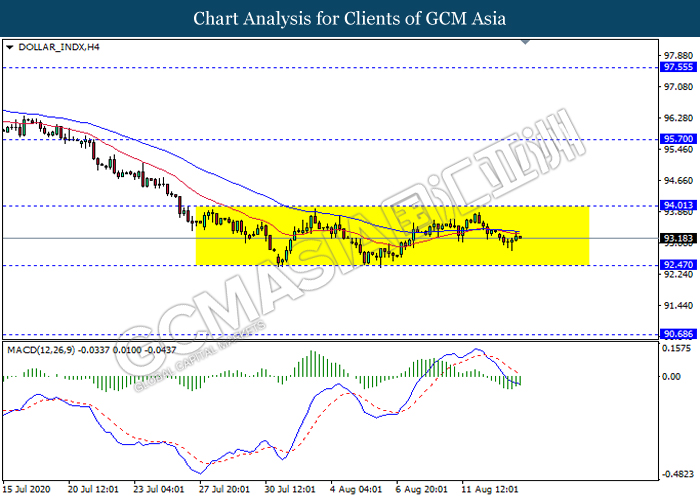 Indeks dolar yang berbanding dengan sebakul enam pasangan mata wang utama telah jatuh pada sesi awal Asia kerana harapan untuk rangsangan ekonomi tambahan telah menyusut disebabkan oleh kebuntuan dari Demokrat dan Republik. Dari segi data, data Initial Jobless Claims telah bertambah baik dengan bacaan sebanyak 963k, melebihi jangkaan pasaran sebanyak 1120K. Namun, data tersebut masih tidak dapat membantu dolar untuk mendapat kembali keyakinannya kerana kebuntuan dalam perbincangan tentang pakej rangsangan terbaru kekal menimbang dalam pasaran. Setakat ini, para penggubal undang-undang A.S. masih belum dapat mencapai kata sepakat mengenai pakej rangsangan Covid-19 terbaru di negara A.S di mana pakej yang banyak dirasakan adalah perlu untuk memastikan pemulihan ekonomi berjalan dengan lancar. Presiden A.S. Donald Trump telah menuduh Demokrat tidak mahu berunding mengenai pakej tersebut dengan perunding Republik dan Demokrat saling menyalahkan sesama sendiri dan rundingan berakhir tanpa sebarang keputusan untuk hari kelima. Presiden Richmond Fed Thomas Barkin menyatakan bahawa ekonomi AS akan mengalami kemerosotan yang lebih lanjut sekiranya AS gagal memberikan lebih banyak bantuan kewangan. Pada masa penulisan, indeks dolar merosot sebanyak 0.22% kepada 93.18.