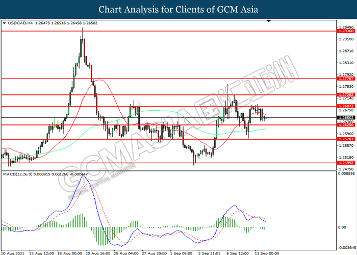 USDCAD, H1: USDCAD telah didagang dengan lebih rendah sementara kini menguji di tahap sokongan 1.2625. MACD yang memaparkan momentum bearish mencadangkan pasangan ini untuk melanjutkan kerugiannya selepas ia memecah tahap sokongan tersebut.
