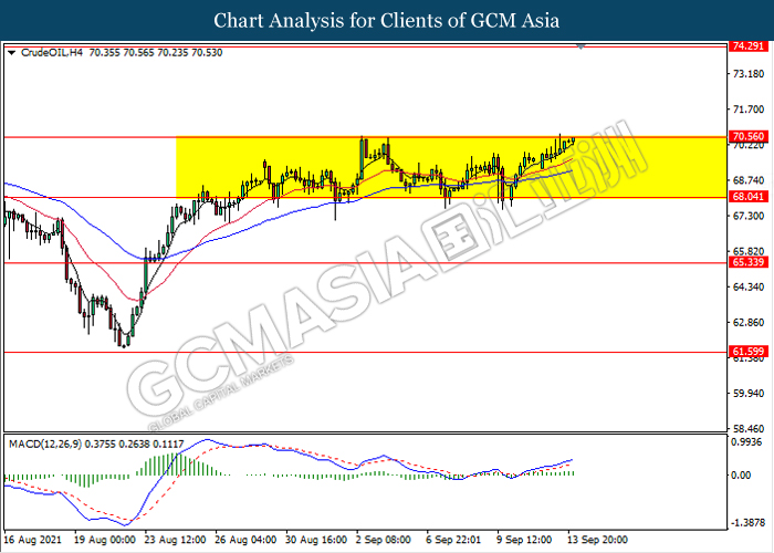 Di pasaran komoditi, harga minyak mentah melonjak sebanyak 0.15% kepada $ 70.53 setong semasa penulisan di tengah-tengah ramalan ribut taufan Nicholas. Menurut kepada ramalan dari Pusat Taufan Nasional A.S., ribut tropika Nicholas akan mendarat di Texas Selatan yang boleh mengakibatkan kilang minyak AS untuk menangguhkan pengeluarannya. Sebaliknya, harga emas turun sebanyak 0.05% kepada $ 1790.55 se troy auns semasa penulisan susulan dengan kenaikan dolar.