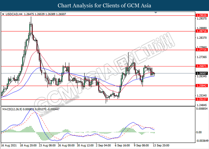 USDCAD, H4: USDCAD telah didagang dengan lebih rendah susulan dengan pengunduran dari tahap rintangan 1.2685. MACD yang memaparkan isyarat momentum bearish mencadangkan pasangan ini untuk melanjutkan pengundurannya ke arah tahap sokongan 1.2585.