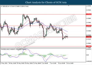 NZDUSD, H4: NZDUSD telah didagang dengan rata sementara ia sedang menguji tahap sokongan 0.7135. Namun, MACD yang memaparkan isyarat momentum bullish dengan formasi silang emas mencadangkan pasangan ini untuk didagang dengan lebih tinggi ke arah tahap rintangan 0.7225.