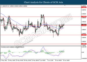 USDCHF, H4: USDCHF telah didagang dengan lebih tinggi susulan dengan pemecahan pada tahap rintangan sebelumnya 0.8990. MACD yang memaparkan isyarat momentum bullish mencadangkan pasangan ini untuk melanjutkan keuntungannya ke arah tahap rintangan 0.9040.