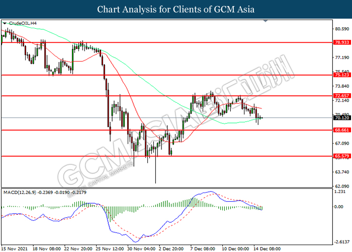 Bagi pasaran komoditi, harga minyak mentah telah menyusut sebanyak 0.07% ke $70.45 se tong semasa penulisan. Pasaran minyak telah didagang dengan lebih rendah berikutan latar belakang data inventori bearish.  Menurut kepada Amerika Petroleum Institusi (API), Stok Minyak Mentah Mingguan API telah memberi bacaan sebanyak -0.815M, lebih buruk daripada jangkaan pasaran sebanyak -2.600M. Sebaliknya, harga emas telah menyusut sebanyak 0.04% ke $1772.40 se troy auns semasa penulisan susulan dengan peningkatan Dolar AS.