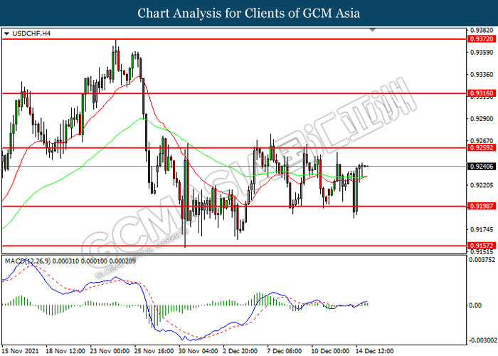 USDCHF, H4: USDCHF telah didagang dengan lebih tinggi selepas ia melantun dari tahap sokongan 0.9200. MACD yang memaparkan momentum bullish mencadangkan pasangan ini untuk melanjutkan keuntungannya ke arah tahap rintangan 0.9260.