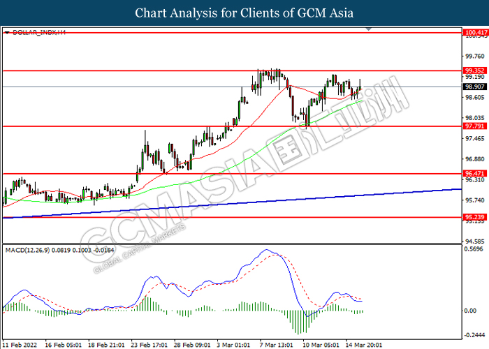 Indeks Dolar yang didagangkan berbanding sekumpulan enam mata wang utama telah melonjak menjelang mesyuarat penting FOMC minggu ini manakala para pelabur membuat spekulasi bahawa Rizab Persekutuan mempunyai peluang yang lebih tinggi untuk melaksanakan pengetatan dasar monetari pada masa hadapan. Namun, buat masa ini para pelabur akan terus kekal fokus terhadap keputusan dasar monetari serta kenyataan mereka untuk menerima isyarat dagangan yang lanjutnya. Data AS Producer Price Indeks semalam telah meningkat lebih sederhana pada Februari, mengekalkan Rizab Persekutuan di landasan untuk menaikkan kadar faedah minggu ini. Menurut kepada Bureau of Labor Statistiks, Producer Price Indeks (PPI) telah meningkat dengan ketara bulan lepas berbanding Februari tahun lepas, peningkatan kadar tahun ke tahun terpantas sejak 2010. Terdahulu, Pengerusi Rizab Persekutuan Jerome Powell telah membuka pilihan untuk meningkatkan kadar faedah dengan bacaan yang lebih besar pada akhir tahun ini. Semasa penulisan, Indeks Dolar telah meningkat sebanyak 0.02% ke 99.00.