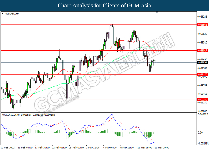 NZDUSD, H4: NZDUSD telah didagang dengan lebih rendah selepas ia memecah tahap sokongan terdahulu. Namun, MACD yang memaparkan momentum bearish yang berkurangan mencadangkan pasangan ini untuk mengalami pembetulan teknikal.