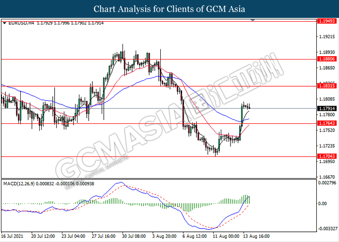 EURUSD, H4: EURUSD telah didagang dengan lebih tinggi susulan dengan pemecahan pada tahap rintangan sebelumnya 1.1765. Namun, MACD yang memaparkan isyarat momentum bullish yang berkurangan mencadangkan pasangan ini untuk melanjutkan pembetulan teknikal kembali ke arah tahap 1.1765.