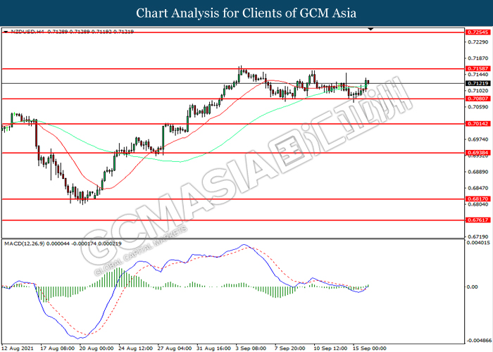 Dolar New Zealand telah melonjak susulan dengan data ekonomi yang optimis pada awal perdagangan. Menurut Statistik New Zealand, Gross Domestik Produk (GDP) New Zealand untuk suku terakhir meningkat dengan ketara dari bacaan sebelumnya sebanyak 1.4% ke bacaan sebanyak 2.8%, lebih baik daripada ramalan pasaran sebanyak 1.3%. Industri perkhidmatan merupakan penyumbang terbesar pertumbuhan GDP pada suku Jun 2021. Penyumbang utama adalah runcit, penginapan dan restoran selepas kes-kes Covid-19 telah dikurangkan di New Zealand. Secara keseluruhan, kebanyakan industri mencatatkan hasil positif pada suku 21 Jun berbanding suku Disember 2019. Akibatnya, GDP suku bulan Jun berada di atas tahap pra Covid-19, meningkat sebanyak 4.3% jika dibandingkan dengan Disember 2019. Selain itu, data ekonomi yang optimis akan meningkatkan kebarangkalian bagi bank pusat untuk mulai mengetatan dasar monetari, yang mencetuskan lebih banyak momentum bullish ke atas Dolar New Zealand. Semasa penulisan, pasangan NZDUSD telah melonjak sebanyak 0.32% ke 0.7125.