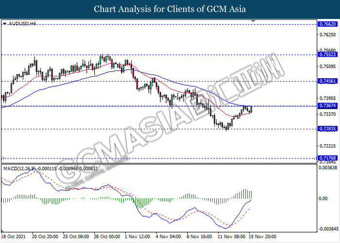 AUDUSD, H4: AUDUSD telah didagang dengan lebih tinggi sementara ia sedang menguji tahap rintangan 0.7365. MACD yang memaparkan isyarat momentum bullish mencadangkan pasangan ini untuk melanjutkan keuntungannya selepas ia memecah tahap rintangan tersebut.