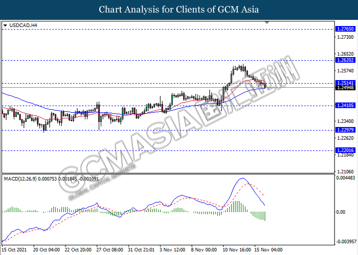USDCAD, H4: USDCAD telah didagang dengan lebih rendah susulan dengan pemecahan pada tahap sokongan sebelumnya 1.2515. MACD yang memaparkan isyarat momentum bearish yang berterusan mencadangkan pasangan ini untuk melanjutkan kerugiannya ke arah tahap sokongan 1.2410.