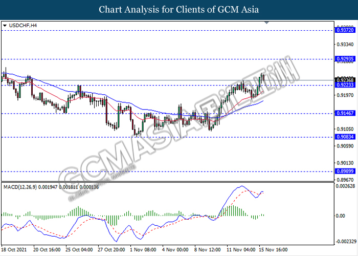 USDCHF, H4: USDCHF telah didagang dengan lebih rendah susulan dengan pengunduran dari paras tingginya. MACD yang memaparkan isyarat momentum bullish yang berkurangan mencadangkan pasangan ini untuk melanjutkan pengundurannya selepas ia memecah tahap sokongan tersebut.