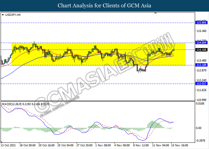 USDJPY, H4: USDJPY kekal didagang dalam saluran sisi. Namun, MACD yang memaparkan isyarat momentum bullish dengnan formasi silang emas mencadangkan pasangan ini untuk didagang dengan lebih tinggi dalam jangka pendek ke arah tahap rintangan 114.60.