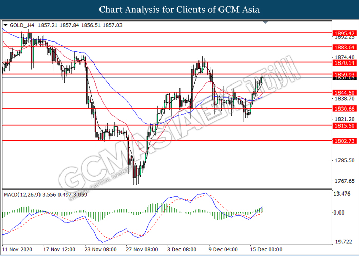 Bagi pasaran komoidti, harga minyak mentah telah meningkat sebanyak 0.05% ke $47.65 se tong semasa penulisan susulan dengan para pelabur tetap optimisme terhadap perkembangan vaksin Covid-19, yang selanjutnya mencetuskan momentum bullish ke atas komoditi tersebut. Sebaliknya, harga emas telah melanjutkan keuntungannya sebanyak 0.22% ke $1857.20 se troy auns semasa penulisan susulan dengan penyusutan dalam Dolar AS.