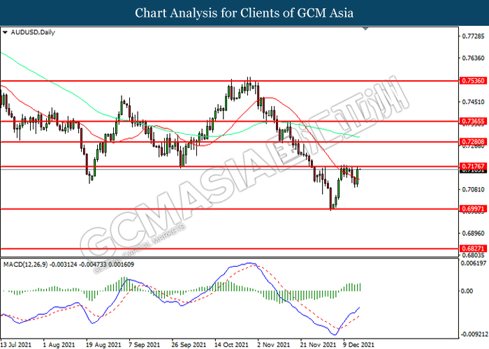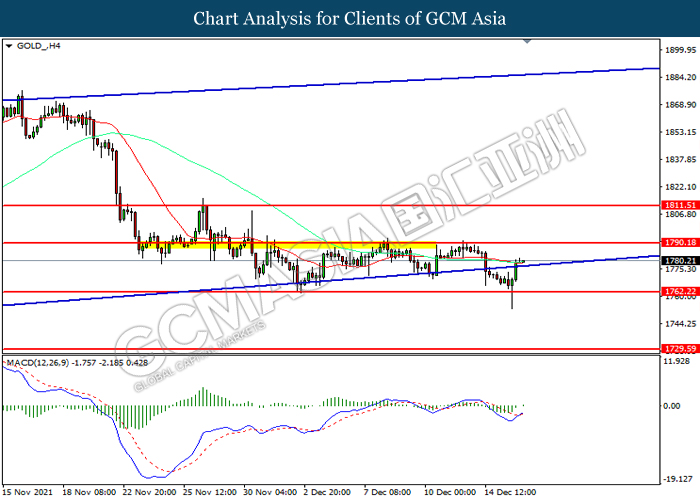 Bagi pasaran komoditi, harga minyak mentah melonjak 0.22% ke $71.85 setong semasa penulisan. Pasaran minyak telah didagang dengan lebih tinggi berikutan latar belakang data inventori bullish semalam. Menurut kepada Energy Information Administration (EIA), Inventori Minyak Mentah A.S. telah memberi bacaan sebanyak -4.584M, lebih rendah daripada ramalan pasaran sebanyak -2.082M. Sebaliknya, harga emas meningkat sebanyak 0.20% ke $1780.40 setiap troy auns semasa penulisan susulan dengan penyusutan dalam Dolar AS.
