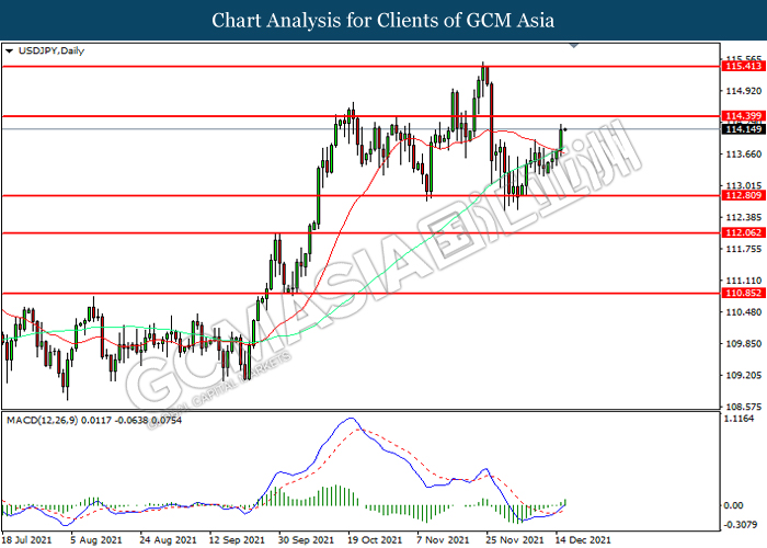 USDJPY, Daily: USDJPY telah didagang dengan lebih tinggi sementara kini menguji di tahap rintangan 114.40. MACD yang memaparkan momentum bullish mencadangkan pasangan ini untuk melanjutkan keuntungannya selepas ia memecah tahap rintangan tersebut.
