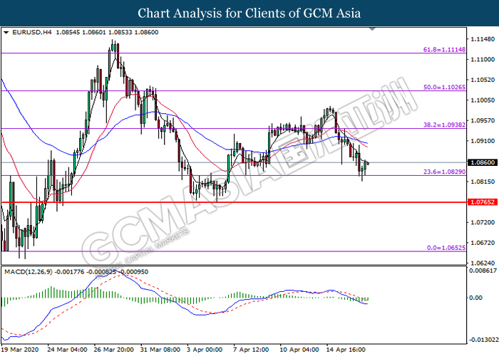 Indeks dolar yang mengukur nilainya terhadap sekumpulan enam mata wang utama menjunam ketika ekonomi AS tetap menyusut yang ditunjukkan oleh serangkaian data ekonomi yang suram. Menurut Jabatan Tenaga Kerja, data Initial Jobless Claims A.S. tetap lemah di mana ia dibebaskan pada bacaan sebanyak 5,245K, yang lebih tinggi daripada jangkaan 5,105K. Sejak pertengahan Mac, pergerakan sekatan yang dilaksanakan oleh kerajaan AS telah melenyapkan seluruh ekonomi AS, menjadikan ekonomi masuk ke tahap kemelesetan. Pasaran buruh AS menjadi ‘masam’ sementara menyebabkan jumlah orang Amerika yang lebih tinggi memohon tuntutan insurans pengangguran kali pertama pada minggu lalu, dan ia juga menunjukkan bahawa kesan negatif pada pasaran buruh AS tetap besar. Selain itu, data daripada sektor pembuatan juga memberikan tanda yang lebih jelas mengenai kesihatan ekonomi semasa. Menurut Federal Reserve Bank of Philadelphia, Philadelphia Fed Manufacturing index AS turun dengan ketara ke -56.6, dan bacaan untuk bulan Mac adalah -12.7, menunjukkan kerosakan sepenuhnya wabak virus kini masih sedang menekan Amerika Syarikat. Namun, indeks dolar berjaya memulih kerugian sebelumnya kerana permintaan pasaran meningkat sementara penyusutan dalam penyebaran Koronavirus. Semasa sesi dagangan awal Asia, indeks dolar turun 0.47% ke 99.95.