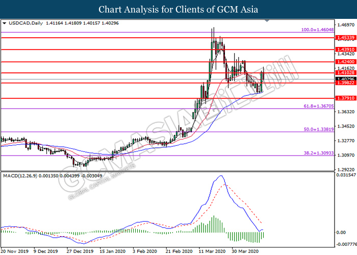 USDCAD, Daily: USDCAD telah didagang dengan lebih tinggi sementara ia sedang menguji tahap rintangan di 1.4105. Namun, MACD yang menunjukkan isyarat momentum bearish yang berkurangan mencadangkan pasangan ini untuk mengalami pembetulan teknikal dalam jangka masa yang pendek.