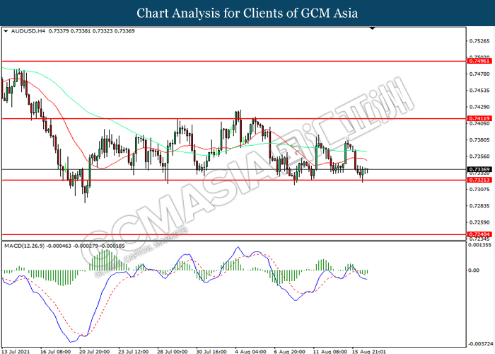 AUDUSD, H4: AUDUSD telah didagang dengan lebih rendah sementara kini berhampiran dengan tahap sokongan 0.7320.. MACD yang memaparkan momentum bullish yang berkurangan mencadangkan pasangan in untuk melanjutkan kerugiannya selepas ia memecah tahap sokongan tersebut.