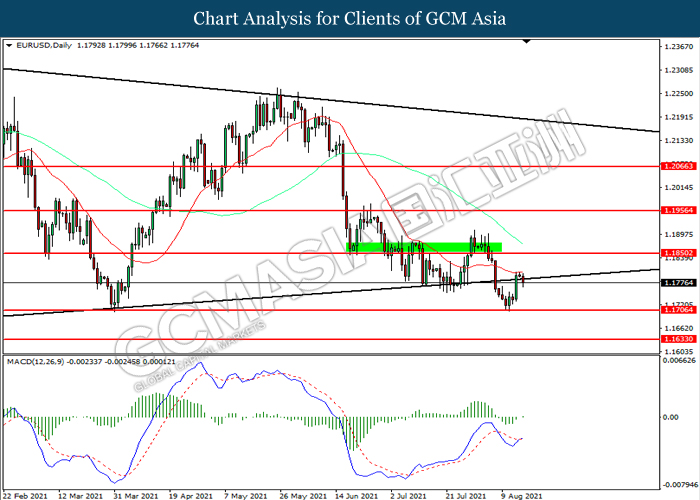 EURUSD, Daily: EURUSD telah didagang dengan lebih tinggi selepas ia melantun dari tahap sokongan 1.1705. MACD yang memaparkan momentum bullish mencadangkan pasangan ini untuk melanjutkan keuntungannya ke arah tahap rintangan 1.1850.