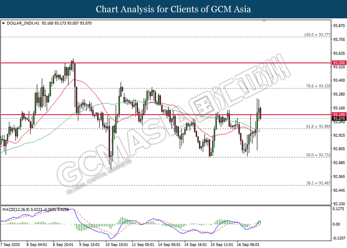 Seperti jangkaan orang ramai, Bank Pusat AS (Fed) telah mengekalkan kadar faedah di paras 0.25% semasa mesyuarat polisi pada awal pagi ini. Namun, Fed telah memberikan ulasan di mana mereka akan mengekalkan kadar faedah di paras rendah untuk jangka panjang sehingga kadar inflasi melebihi sasaran yang ditetapkan iaitu 2% bagi tempoh masa yang lebih panjang. Perubahan pada tona yang digunakan memaparkan perubahan kepada rangka polisi yang baru di mana ia menyasar untuk mengimbangi kadar inflasi yang rendah dan membenarkan pasaran pekerjaan untuk meningkatkan kadar pekerjaannya untuk tempoh masa yang lebih panjang. Semasa sidang media, Pengerusi Fed Jerome Powell mengulas bahawa tetapan dasar kewangan akan kekal longgar sehingga ekonomi melebihi fasa pemulihan. Namun, Powell juga menegaskan bahawa momentum pemulihan ekonomi dijangka untuk meningkat secara perlahan dan ia akan memerlukan sokongan dari Fed serta perbelanjaan dari kerajaan. Tambahan pula, Fed telah membebaskan ramalan ekonomi sukuan di mana GDP, kadar pengangguran dan inflasi menerima ulasan positif apabila dibandingkan dengan ramalan dari bulan Jun lepas. Sebagai reaksi terhadap sentimen yang hawkish Fed ke atas jangkaan ekonomi, indeks dolar meningkat sebanyak 0.06% ke 93.07.