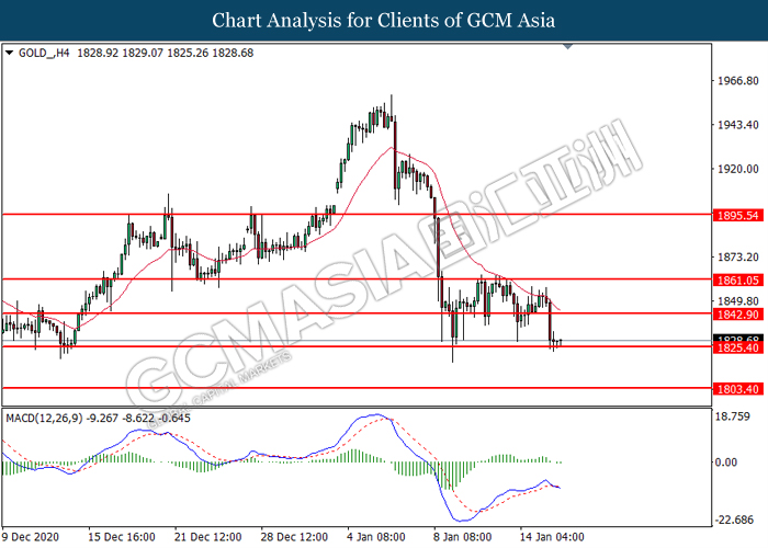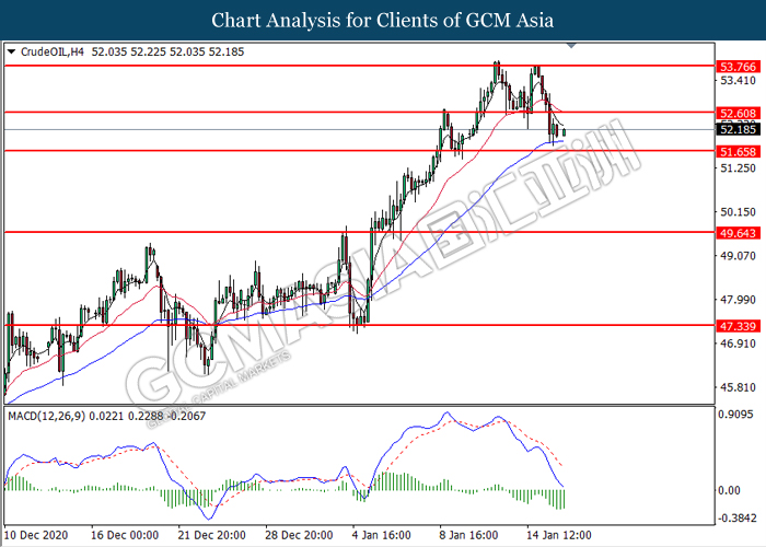 Di pasaran komoditi, harga minyak mentah melantun 0.23% ke $52.14 setong semasa penulisan. Dalam sesi dagangan lalu, harga minyak mentah menerima tekanan jual yang kuat kerana jumlah pelantar minyak AS telah meningkat selama lapan minggu berturut-turut. Menurut kepada Baker Hughes, data US Oil Rig Count telah dibebaskan pada bacaan sebanyak 287, menunjukkan kenaikan 13 pelantar minyak ketika dibandingkan dengan bacaan sebelumnya iaitu 275. Selain itu, harga emas turun 0.09% ke $1827 setroy auns susulan dengan lonjakan hasil perbendaharaan AS 10 tahun telah menaikkan daya tarikan dolar, dan menekan harga emas.