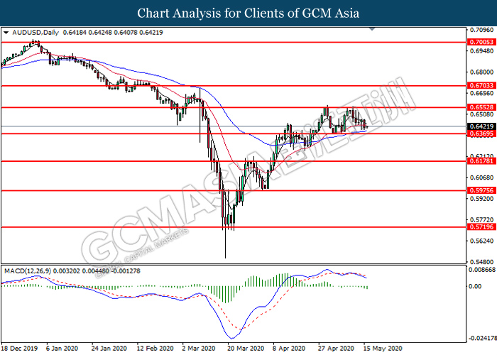AUDUSD, Daily: AUDUSD telah didagang dengan lebih rendah selepas ia berundur dari tahap rintangan di 0.6555. MACD yang memaparkan isyarat momentum bearish yang berterusan mencadangkan pasangan ini untuk melanjutkan kerugiannya dan menuju ke arah tahap sokongan di 0.6370.