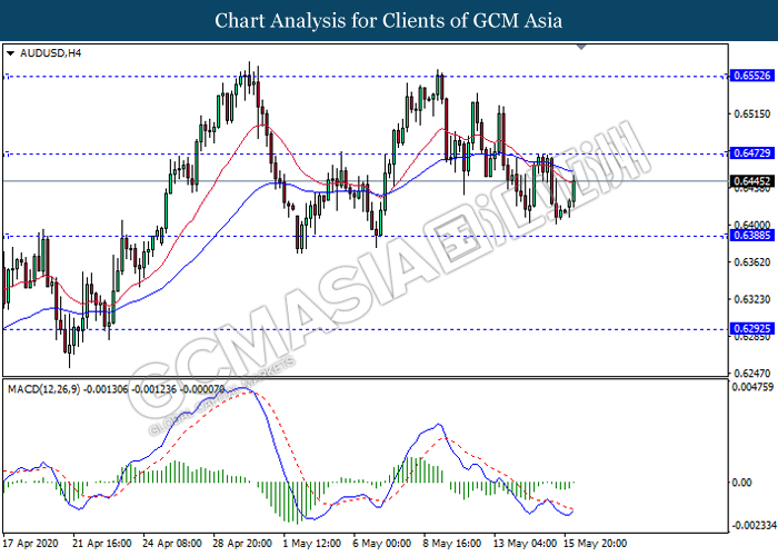 AUDUSD, H4: AUDUSD telah didagang dengan lebih tinggi berikutan dengan lantunan dari tahap sokongan 0.6390. MACD yang memaparkan isyarat momentum bearish yang telah berkurangan dengan formasi silang emas mencadangkan pasangan ini untuk melanjutkan lantunannya dalam jangka pendek ke arah tahap rintangan 0.6470.