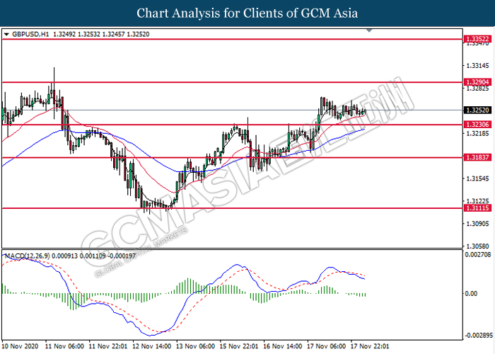 GBPUSD, H1: GBPUSD telah didagang dengan lebih tinggi sementara ia memecah tahap rintangan sebelumnya di 1.3230. MACD yang memaparkan isyarat momentum bearish yang berkurangan mencadangkan pasangan ini untuk melanjutkan keuntugannya dan menuju ke arah tahap rintangan di 1.3290.