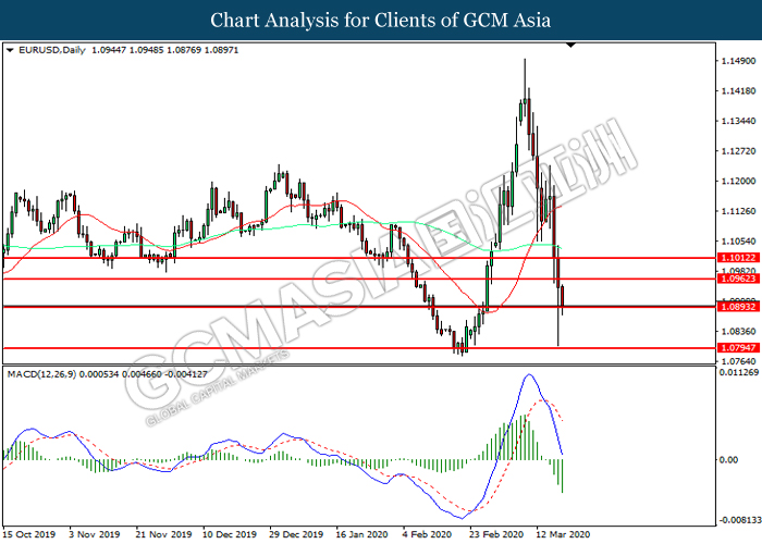 Paun sterling U.K yang berbanding dengan semua mata wang yang lain telah jatuh ke tahap paling terendah dalam tiga dekad sejak 1985 dan melepasi paras rendah undian Brexit pada sesi Asia lewat berikutan dengan keadaan koronavirus yang semakin buruk di UK dan kekurangan komitmen daripada Perdana Menteri U.K Boris Johnson. Susulan dengan pandemik mula merebak ke Britain, para pelabur bimbang langkah pencegahan daripada Perdana Menteri Boris Johnson adalah kurang berhasil berbanding dengan langkah-langkah yang diambil oleh negara-negara Eropah yang telah menyebabkan kenaikan baru-baru ini dalam kes-kes dan kematian di seluruh negara. Menurut kepada perkembangan terbaru, jumlah kematian akibat koronavirus di U.K telah melonjak sebanyak 33 ke 104 manakala jumlah jangkitannya berada pada 2626. Keadaan yang semakin merosot telah menyebabkan para pelabur untuk melarikan diri dari aset U.K. Pada masa yang sama, bon kerajaan U.K juga merosot dan menambah tekanan selanjutnya bagi mata wang negaranya selepas kerajaan mengumumkan pakej penyelamatan untuk perniagaan dalam usaha untuk menghentikan koronavirus menghancurkan ekonomi domestik. GBP/USD telah menjunam sebanyak 0.90% kepada 1.1510 semasa penulisan.