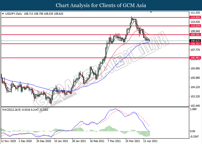 Di pasaran komoditi, harga minyak mentah turun 0.25% ke $62.90 setong semasa penulisan di tengah peningkatan kebimbangan pasaran mengenai kebangkitan semula kes Covid-19 global. Selain itu, pengumuman untuk menghentikan penggunaan vaksin J&J akibat kemungkinan kesan sampingan pembekuan darah juga telah menghilangkan optimisme pasar terhadap prospek permintaan minyak. Selain itu, harga emas naik 0.09% ke $1778.00 setroy auns di tengah kelemahan dolar indeks.