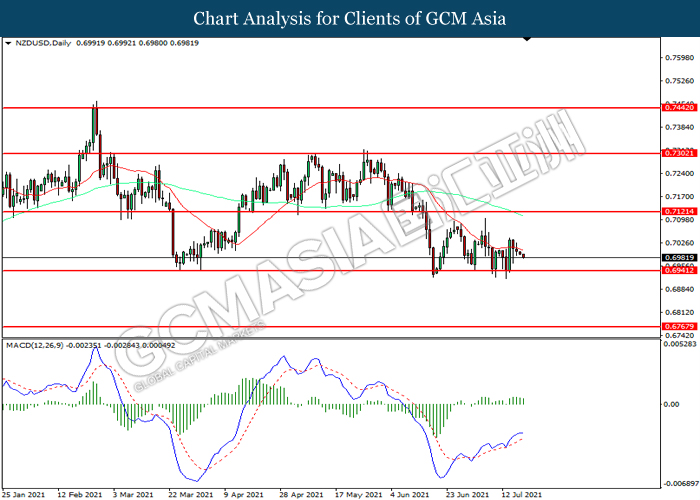 NZDUSD, Daily: NZDUSD telah didagang dengan lebih rendah sementara kini menguji di tahap sokongan 0.6940. MACD yang memaparkan momentum bullish yang berkurangan mencadangkan pasangan ini untuk melanjutkan kerugiannya selepas ia memecah tahap sokongan tersebut.